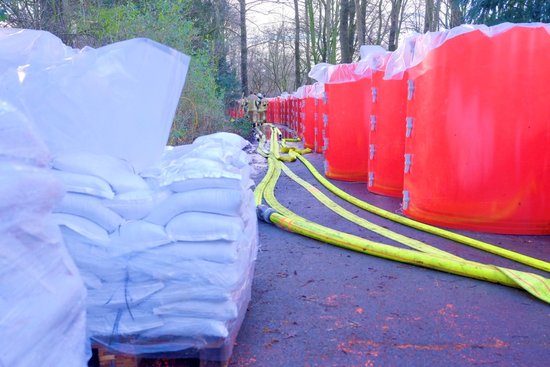Um das Gebiet in Bümmerstede zu schützen, haben die Einsatzkräfte seit dem 1. Januar einen mobilen Deich errichtet, der heute im Laufe des Tages weiter fertiggestellt wird. Diese etwa zwei Kilometer lange Deichverteidigungslinie erstreckt sich von der Kreuzung Cloppenburger Straße/Sandkruger Straße entlang der Sandkruger Straße bis etwa 50 Meter über die Bümmersteder Tredde hinaus. Dieser künstliche Deich ist eine Kombination aus drei Verteidigungslinien: Nutzung von natürlichen Höhen (zum Beispiel entlang des Friedhofs), Sandsäcken sowie eines künstlichen Deichs, der aus weißen Hartschaumplatten besteht.