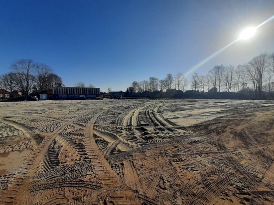 Auf dem Sportplatz neben der Grundschule Alexandersfeld hatten die vorbereitenden Arbeiten für den Bau des Kunstrasenfeldes bereits im Mai 2021 begonnen. Die erforderliche Kampfmittelsondierung – das Gelände gehörte früher zum Fliegerhorst – konnte aufgrund starker und anhaltender Regenfälle jedoch erst Anfang Januar 2022 abgeschlossen werden. Für die Überprüfung wurde das Areal etwa 70 Zentimeter tief ausgekoffert, an acht Stellen ging es sogar bis zu vier Meter in die Tiefe. Erst nach der offiziellen Freigabe der Sportplatzfläche durch die Kampfmittelräumfirma konnten die eigentlichen Arbeiten am Kunstrasenplatz starten. Aktuell werden rund 6.500 Kubikmeter Füllsand eingebaut, die den Bodenabtrag ausgleichen. Parallel laufen schon Arbeiten für die Entwässerung des Platzes. Mit der Fertigstellung dieser Anlage wird im Sommer gerechnet.