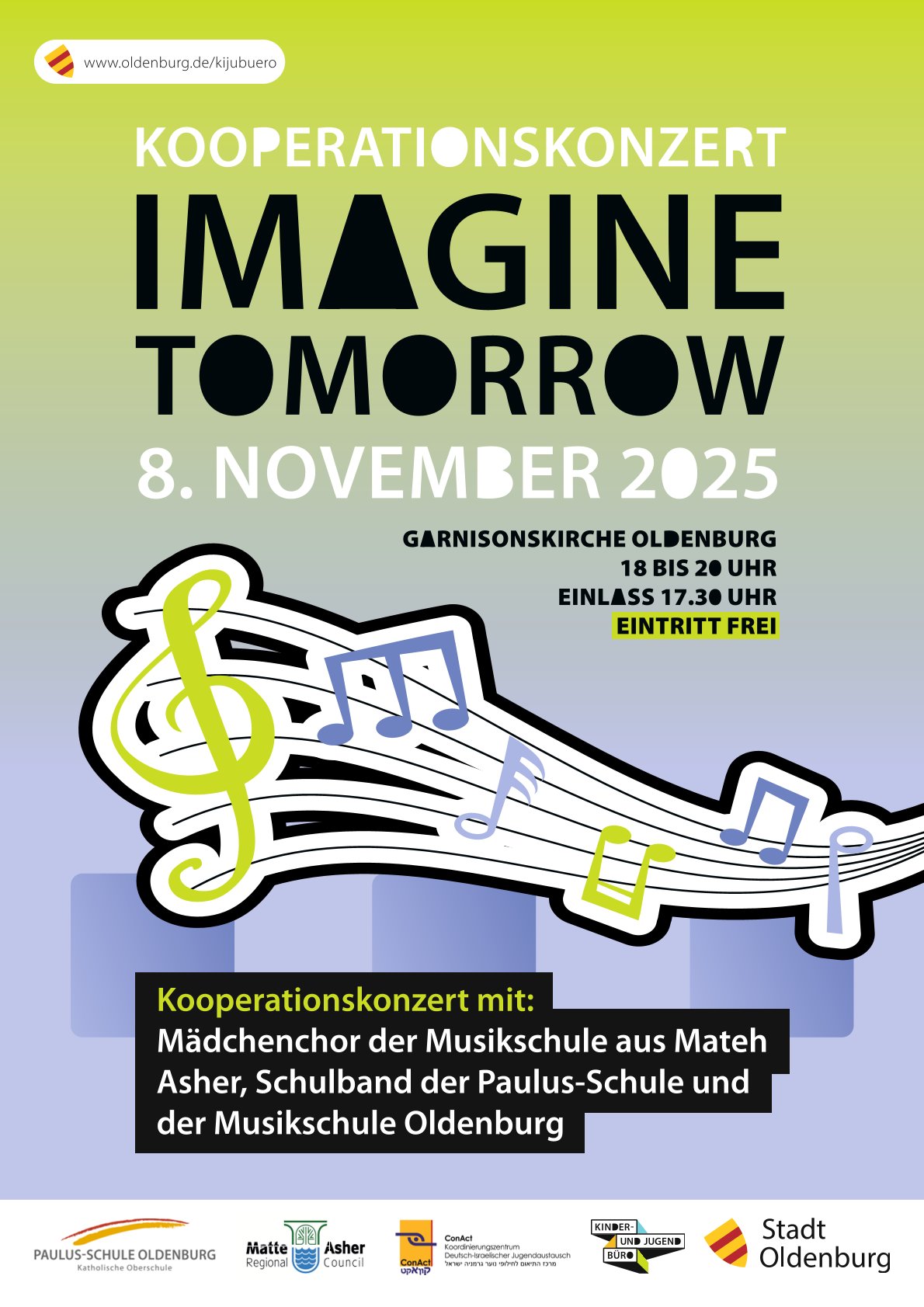 Oldenburg. Musik kennt keine Grenzen: Im Rahmen der diesjährigen internationalen Jugendbegegnung zwischen Oldenburg und Mateh Asher (Israel) laden das Kinder- und Jugendbüro, die Schulband „Futuristics“ der Paulus-Schule, die Musikschule Oldenburg und der „Matte Asher Choir“ herzlich zu einem besonderen Kooperationskonzert ein. Dieses findet am Samstag, 8. November, von 18 bis circa 20 Uhr in der Garnisonkirche Oldenburg statt. Einlass ist bereits ab 17.30 Uhr, der Eintritt ist frei. Die jungen Musikerinnen und Musiker aus Oldenburg und Mateh Asher präsentieren ein vielfältiges Programm aus Pop-, Rock- und klassischer Musik. Das Konzert ist Teil des langjährigen Begegnungsprogramms, das die Verbundenheit zwischen den Partnerstädten über viele Jahrzehnte hinweg stärkt.