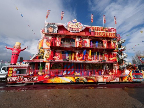 Auch das „Feueralarm“ der Familie Schmidt feiert seine Premiere auf dem Oldenburger Kramermarkt. Das Laufgeschäft thematisiert den Besuch einer Feuerwache und bietet abwechslungsreiche Hindernisse und Aufgaben. Das in 2022 fertiggestellte Geschäft feierte gelungene Premieren im Umland – und nun auch in Oldenburg.