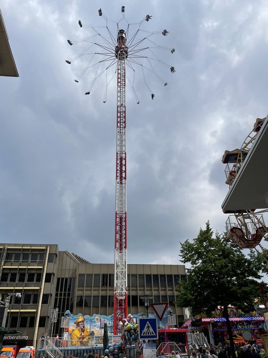 Denn höher als das Riesenrad und neu dabei ist der „Nordic Tower“ der Familie Nülken. Auf diesem hanseatisch gestalteten Kettenflieger erreichen Mitfahrende eine Höhe von 80 Metern – und erhalten so einen rasanten Überblick über das Marktgeschehen.