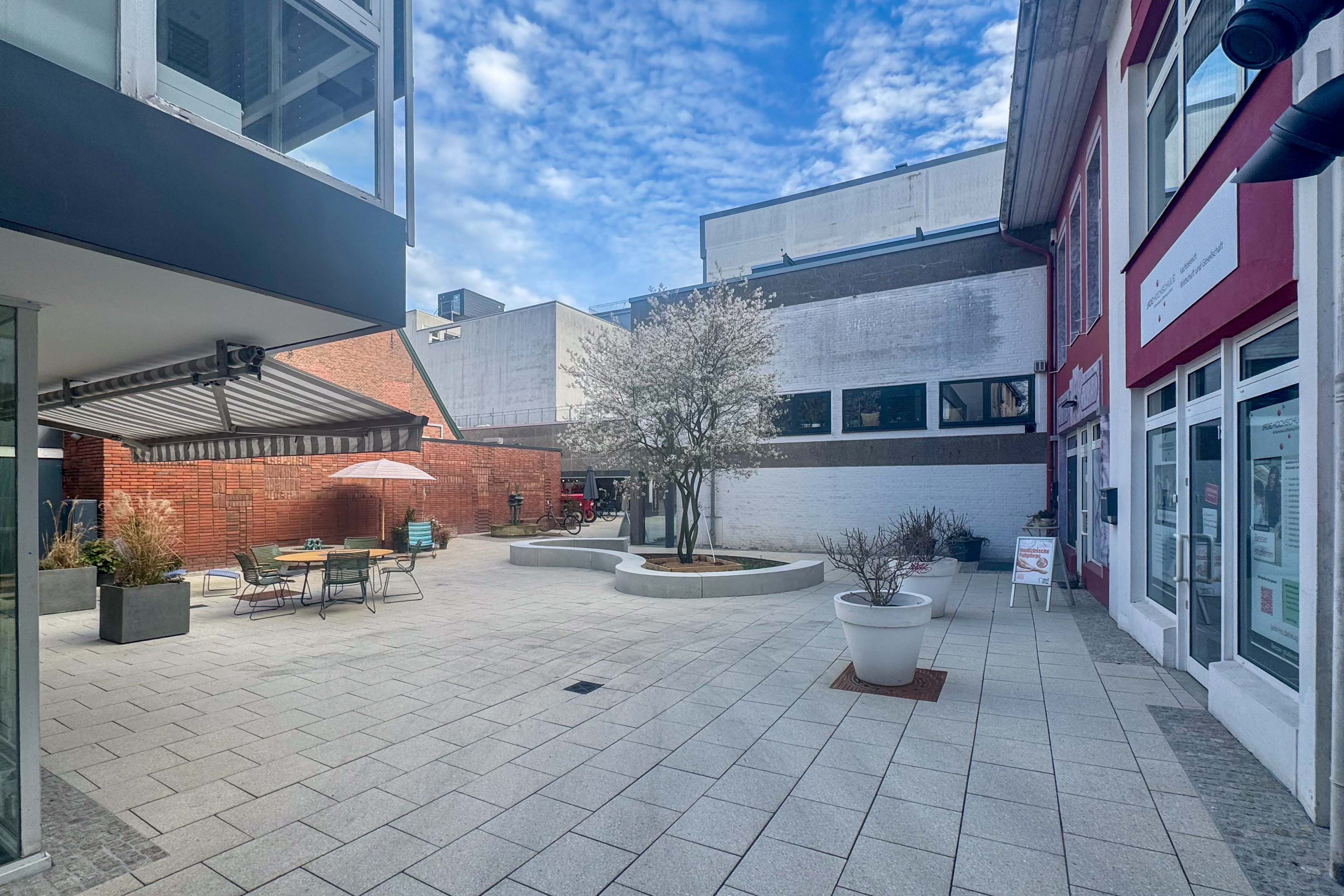 Oldenburg. Die Sanierungsmaßnahmen im Sartoriusgang sind abgeschlossen – und damit lädt die Verbindung zwischen Herbartgang und Wallstraße wieder zum Verweilen ein. Stadtbaurätin Christine-Petra Schacht machte sich mit weiteren Mitgliedern der Verwaltung am Donnerstag, 9. April, ein Bild der erfolgreichen Umgestaltung. Diese kann sich sehen lassen: Ein zentral angelegtes, geschwungenes Pflanzbeet bildet mit einer erhöhten Einfassung aus hellem Beton eine einladende Ruhezone. Anfang des Jahres wurde eine Kupfer-Felsenbirne als Blickfang und Schattenspender gepflanzt. Nebenan sprudeln die frisch sanierten Brunnenskulpturen.