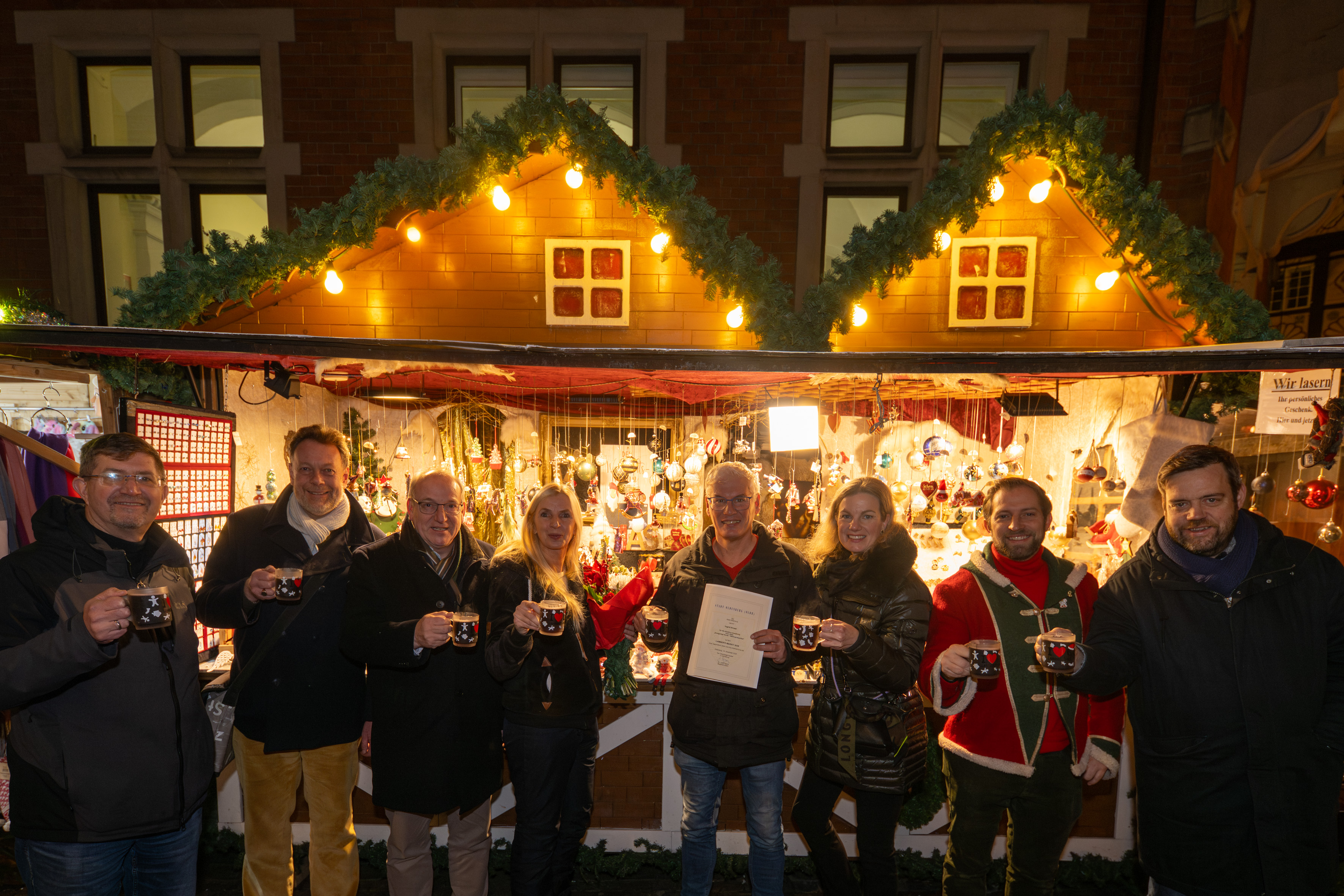 Nun ist die Entscheidung gefallen: Die reich dekorierte Hütte „Einzigartige Kunst“ von Ingrid Kruse am Alten Rathaus ist zur schönsten Hütte auf dem Lamberti-Markt 2025 gewählt worden. Dort wird ein vielfältiges Sortiment an liebevoll gestalteten Weihnachtsartikeln angeboten – von funkelnden Christbaumkugeln über dekorative Häuschen bis hin zu charmanten Wichteln und vielen weiteren stimmungsvollen Accessoires.