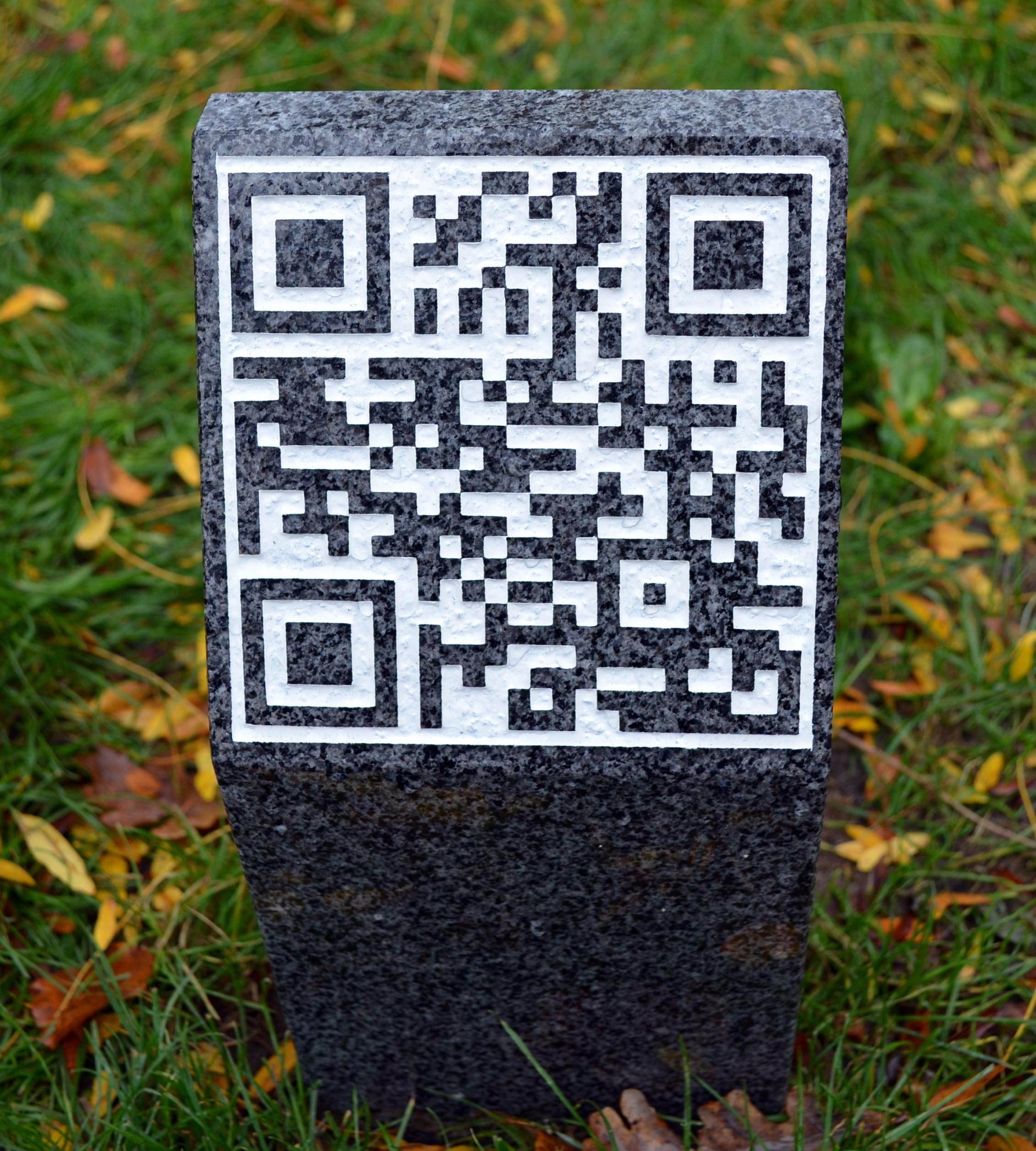 Anlässlich des Erinnerungsganges vom 10. November 2014 wurde der QR-Code durch den Steinmetz Jan Wandscher auf eine Steinstele eingraviert. Diese Steinstele ist in unmittelbarer Nähe der Informationstafel für die ehemalige Synagoge und das ehemalige Schulhaus in der Peterstraße aufgestellt worden. Der QR-Code ermöglicht den unmittelbaren Zugriff auf die Inhalte einer Internetseite mittels eines Smartphones.