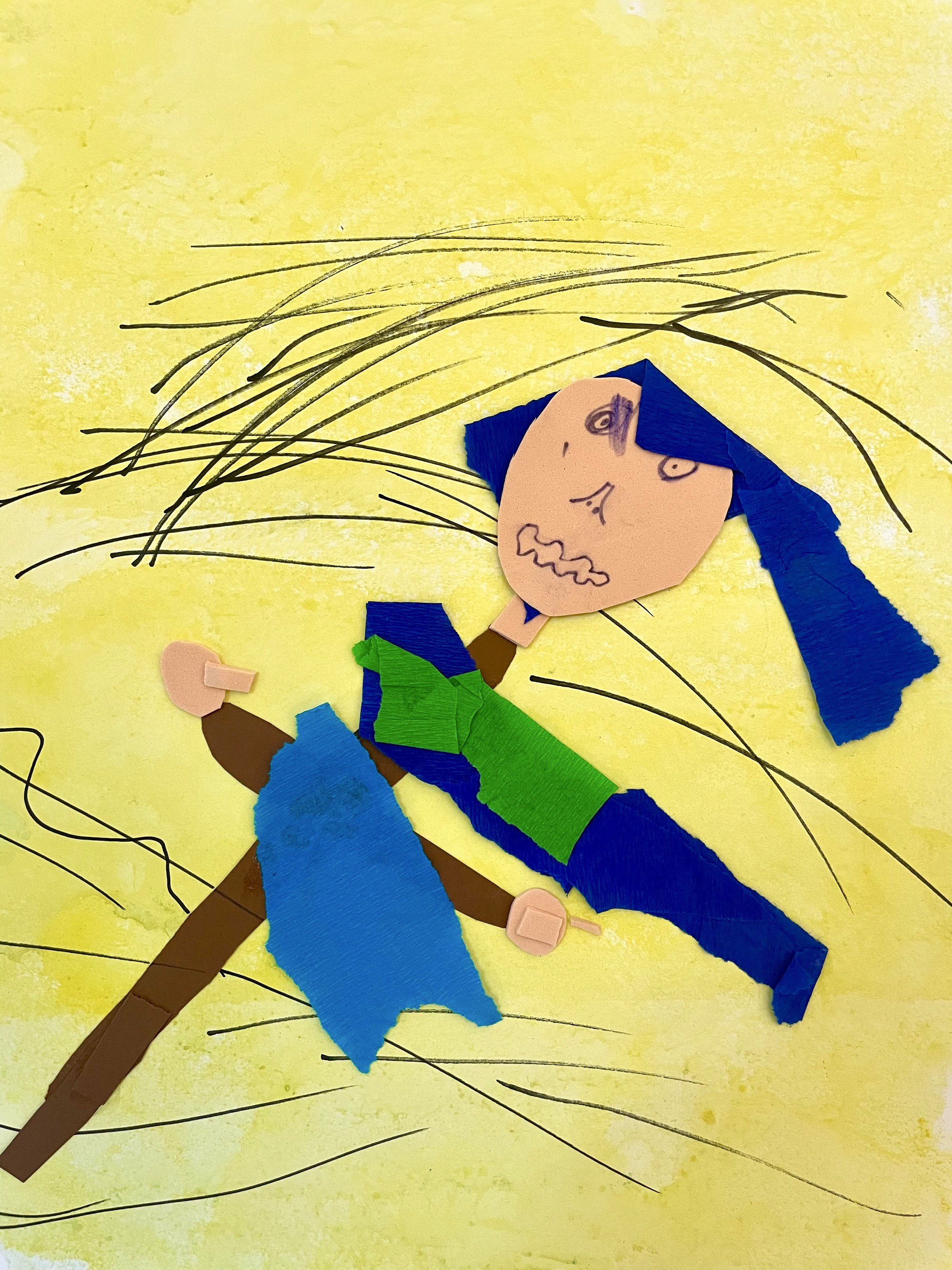 Die Schülerinnen und Schüler haben die Kunstwerke intensiv erforscht und dann zum Anlass für ihre eigene gestalterische Arbeit genommen. Mit unterschiedlichen Materialien und Techniken wurde sehr ideenreich experimentiert: die Kinder haben mit Bindfäden Materialdrucke gestaltet, mit Kreide gezeichnet, mit farbigen Papieren Collagen geklebt und ihre tänzerischen Bewegungen in Fotografien eingefangen. In einem Workshop mit der Pädagogin Nina Gluth lernten die Schülerinnen und Schüler die Fototechnik als interessante Ausdrucksmöglichkeit kennen, um die Illusion von Bewegung zu erzeugen. Entstanden sind reizvolle Fotografien mit malerischen Lichtspuren, die die zarte Stofflichkeit der Kleidung und Objekte der Kinder wie Hula-Hoop-Reifen und Tücher, in poetische Leichtigkeit verwandeln. „Alle Bilder zusammen ergeben ein großes Bild voller Bewegung“, beschreibt der Schüler Johan Dobe die entstandenen Arbeiten. Dies zeigt eindrucksvoll auch das Titelmotiv zur Ausstellung, das Ronja Knutz in tänzerischer Anmut darstellt. Ein besonderer Höhepunkt des Projekts war die persönliche Begegnung mit der Kooperationskünstlerin Gertje Kollmann, die den Kindern viel Interessantes über sich und den Entstehungsprozess ihrer Fotografien erzählte.