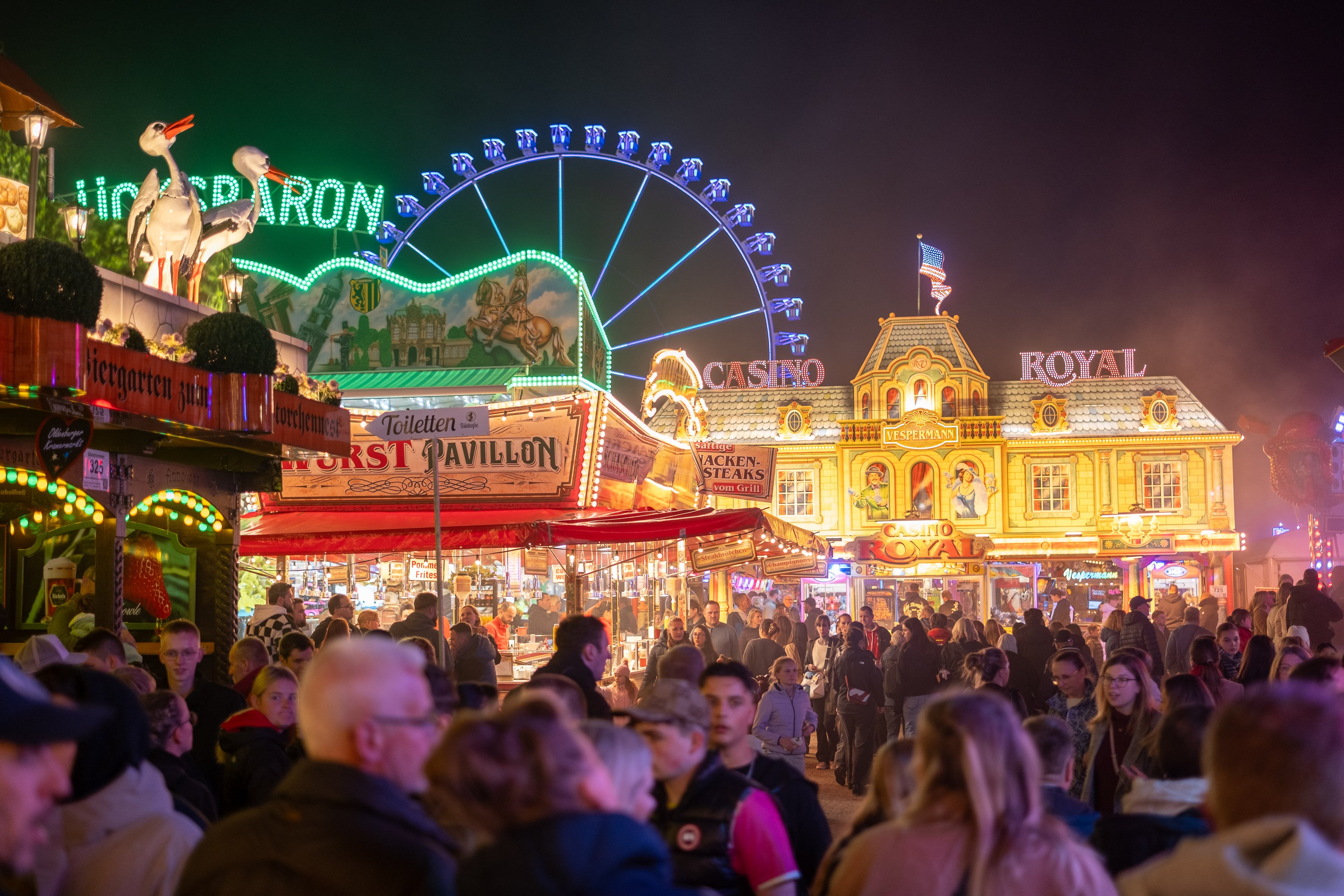 Die Besucherzahlen setzen sich aus allen Altersklassen zusammen. „Vor dem 3. Oktober 2025 hatte ich etwas Respekt“, gesteht Marktmeister Dennis Ostendorf. „Denn da der Tag der Deutschen Einheit in diesem Jahr auf einen Freitag fiel, eignete er sich wunderbar für ein verlängertes Wochenende – und wir haben uns auf einen entsprechend großen Besucherandrang eingestellt.“ Und tatsächlich: Dieser Tag war der mit Abstand bestbesuchte Tag des Kramermarktes. „Es zeigt, dass die Menschen an diesem Tag nach Oldenburg kommen und nicht aus Oldenburg wegfahren“, freut sich Robért Hempen, 1. Vorsitzender des Oldenburger Schaustellerverbands.