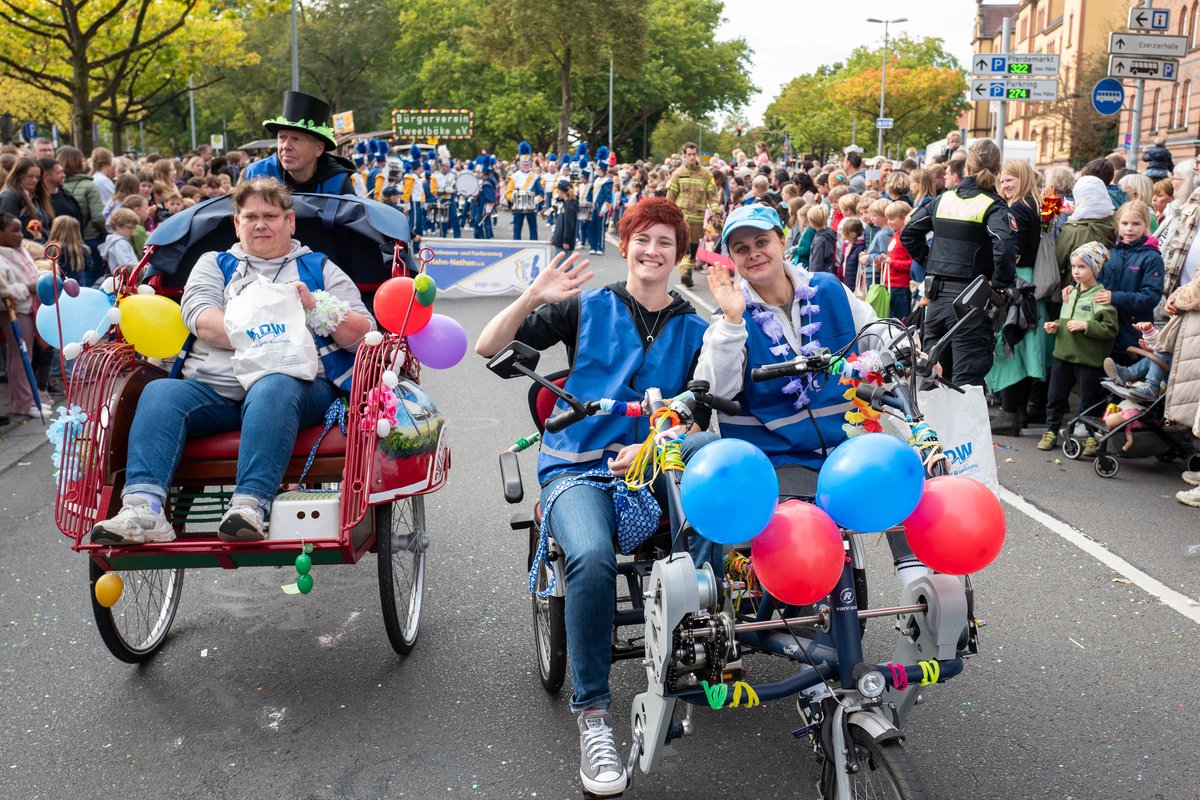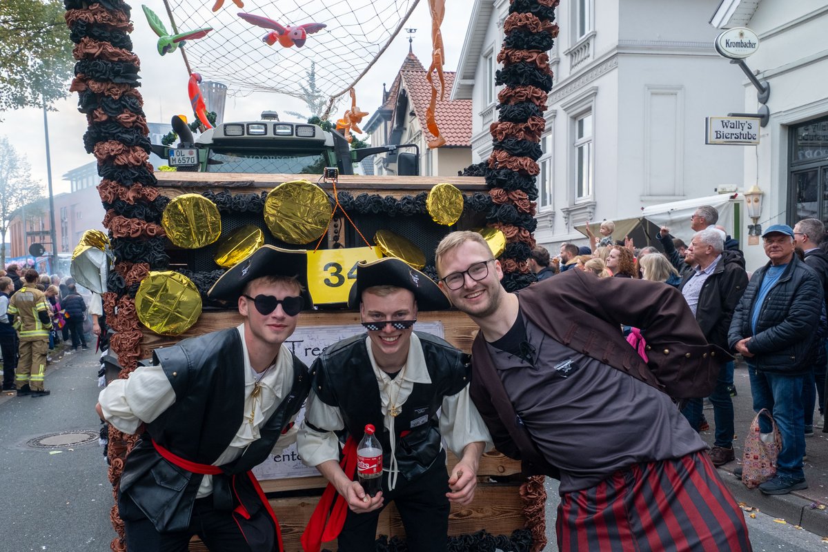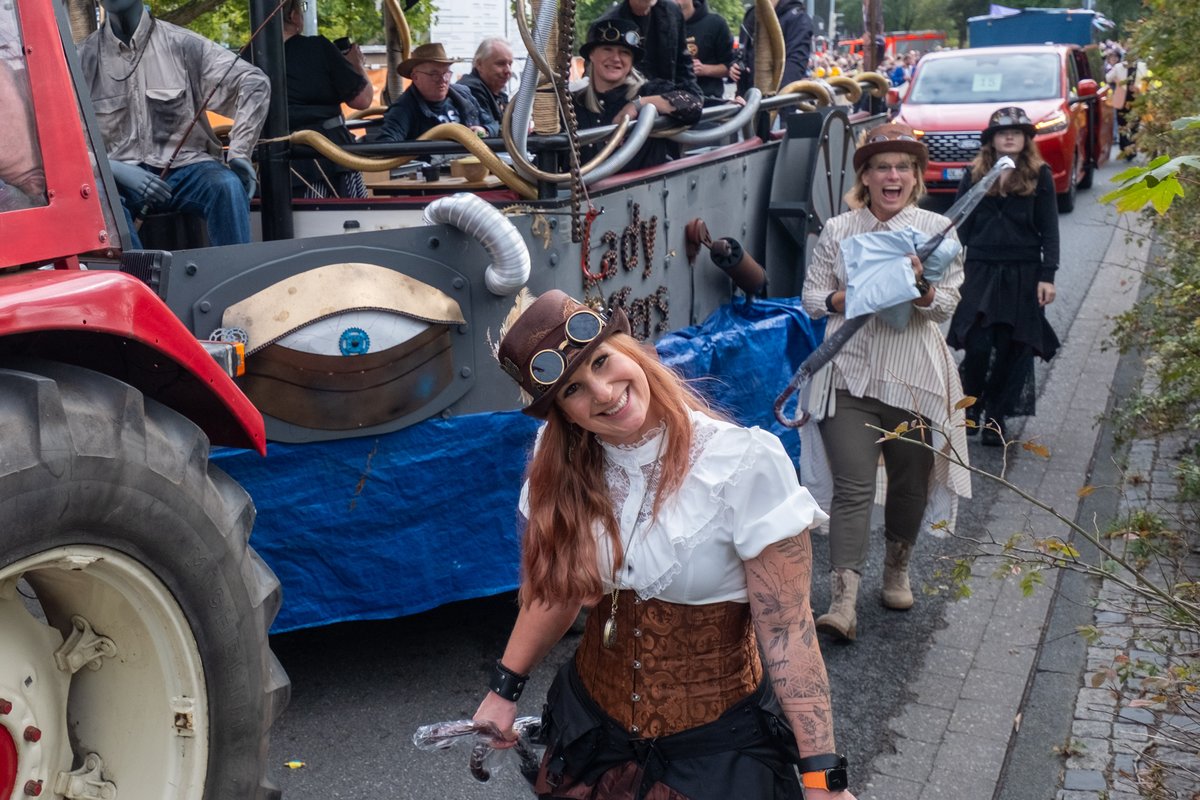 Fantasievoll dekorierte Wagen, bunte Kostüme und natürlich Kamelle: Am Samstag, 27. September 2025, hat der traditionelle Festumzug zum Oldenburger Kramermarkt stattgefunden. Die Stimmung war bei bestem Wetter sowohl bei den Zuschauerinnen und Zuschauern, als auch bei den Umzugsteilnehmenden wieder sehr gut.