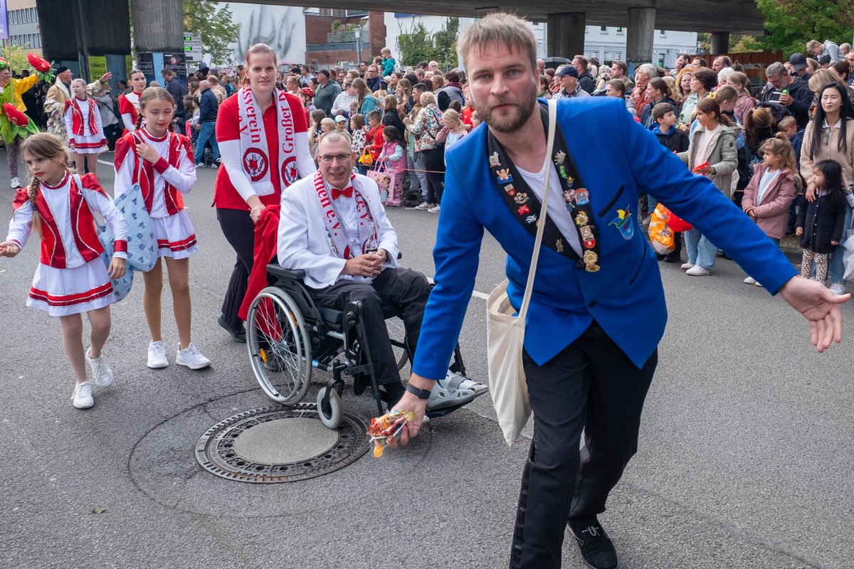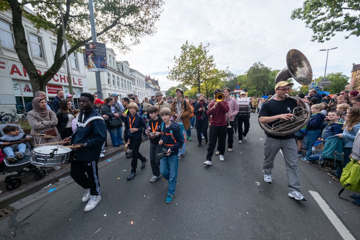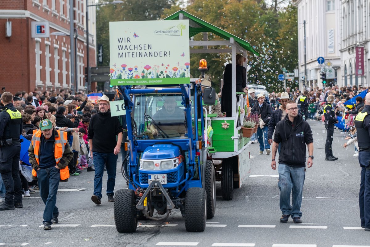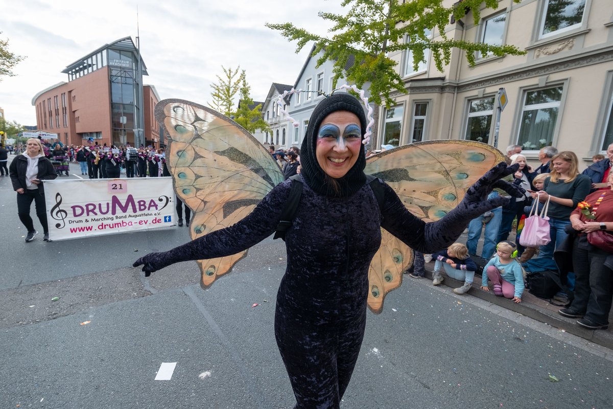 Fantasievoll dekorierte Wagen, bunte Kostüme und natürlich Kamelle: Am Samstag, 27. September 2025, hat der traditionelle Festumzug zum Oldenburger Kramermarkt stattgefunden. Die Stimmung war bei bestem Wetter sowohl bei den Zuschauerinnen und Zuschauern, als auch bei den Umzugsteilnehmenden wieder sehr gut.