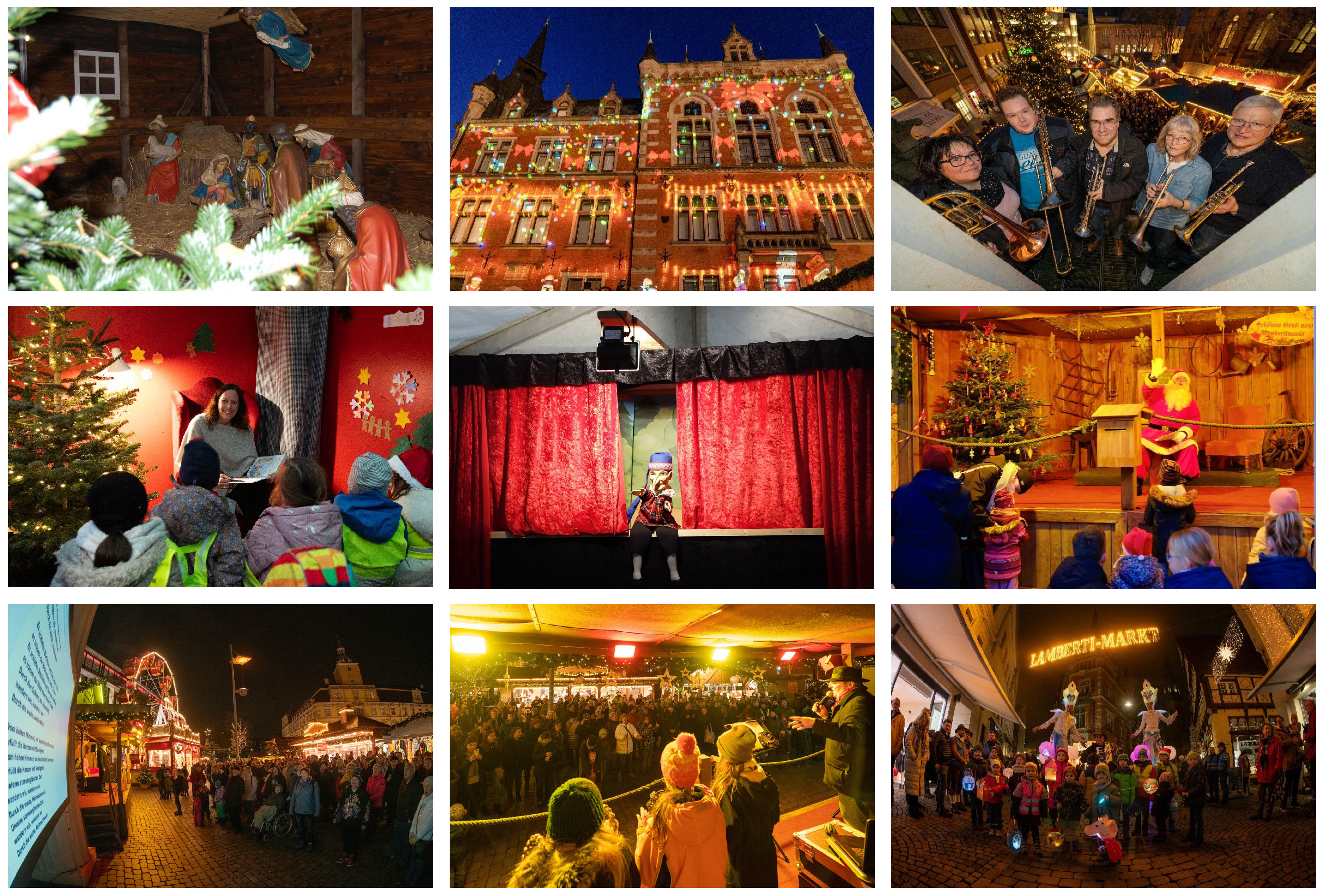 Rund 110 liebevoll geschmückte Hütten, viel Tannengrün und Lichterglanz verzaubern die Plätze zwischen dem Alten Rathaus, der backsteinernen St. Lamberti-Kirche und dem historischen Schloss durch eine festliche Atmosphäre und laden bis zum 22. Dezember die Besucherinnen und Besucher zum Verweilen ein.