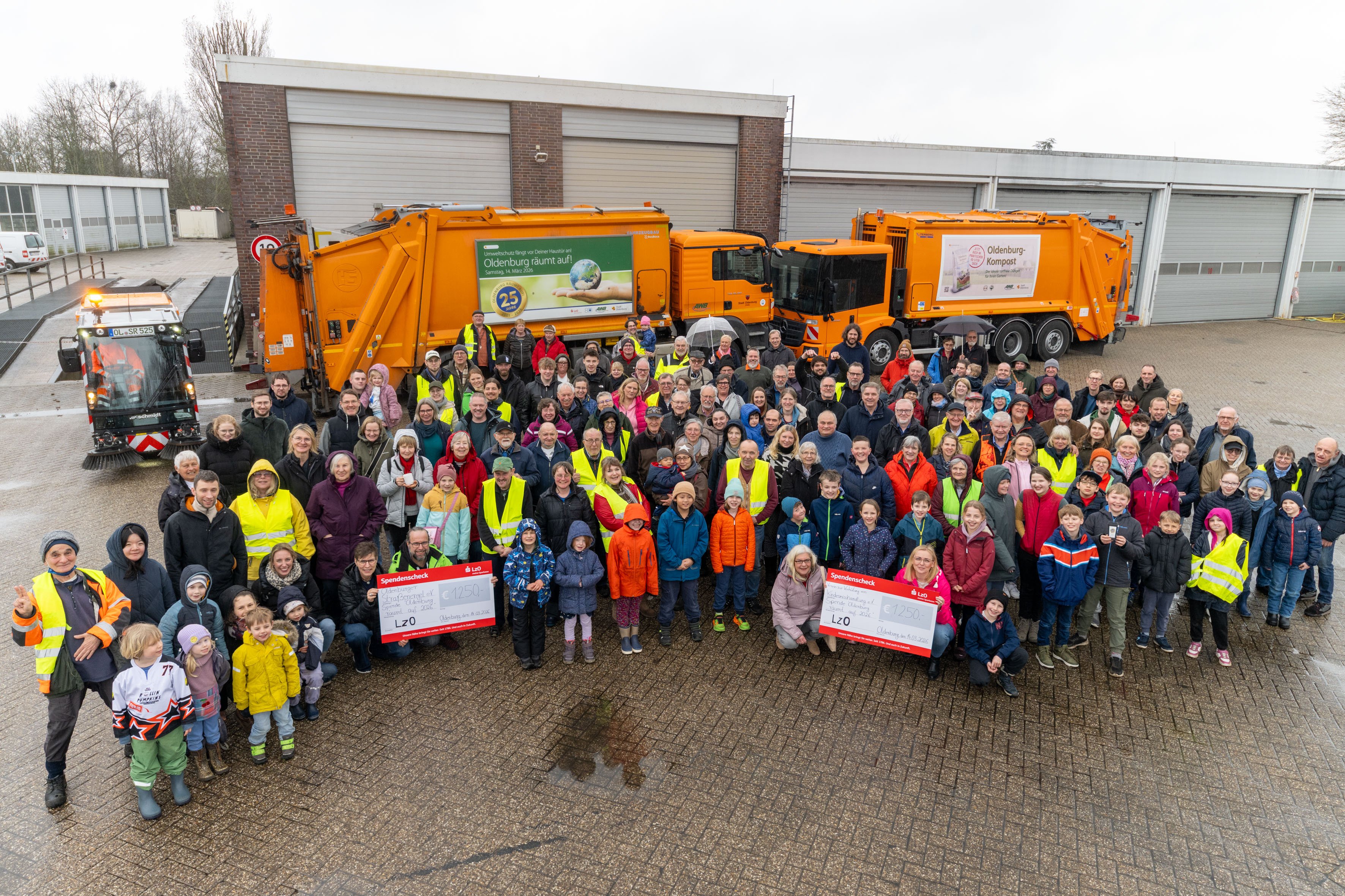 Die Aktion „Oldenburg räumt auf“ verbindet Umweltengagement seit vielen Jahren auch mit sozialem Einsatz. So stellte die Landessparkasse zu Oldenburg (LzO) erneut eine Spende zur Verfügung. Für jedes gesammelte Kilogramm Müll wurde ein Betrag gespendet, der anschließend gemeinnützigen Einrichtungen in Oldenburg zugutekam. In diesem Jahr ging die Spende in Höhe von 2.500 Euro zu gleichen Teilen an den Verein zur Verhütung von Kindesmisshandlung e.V. sowie den Oldenburger Straßenengel e.V.