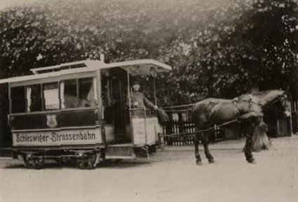 Die Strecke Donnerschwee – Osternburg hatte eine Fahrtdauer von 18 Minuten, Bahnhof – Ofenerstraße 13 Minuten und der Pferdemarkt war mit der Pferdebahn vom Bahnhof aus in drei Minuten zu erreichen. Schon damals galt das System als veraltet. Der Wagen fuhr auf Schienen. Da die Schienen nur einspurig verliefen, mussten die Pferdebahnen einander ausweichen. Dies war durch die besonderen Räder möglich: Es gab fünf Räder, aber nur eines hielt den Wagen in der Spur. Bei so einem Überholmanöver wurde dieses fünfte Rad vom Kutscher gehoben. Der Wagen holperte dann unsanft über die Straßenpflasterung. 1888 stellte die Oldenburger Pferdebahn ihren Betrieb ein. Die Gleise und die Fahrzeuge wurden nach Schleswig verkauft. 1890 wurde dort die Pferdebahn eröffnet und 1910 dann auf elektrischen Betrieb umgestellt. Hier auf dem Foto siehst du die „Schleswiger Strassenbahn“.