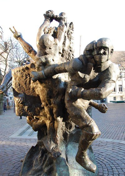 Diese Skulptur findest du zwischen dem Rathaus und der Lambertikirche. Dort steht sie seit 1983. Sie ist mehr als drei Meter hoch. Der Künstler dieser Skulptur ist Bernd Altenstein. Seine Kunstwerke stellen fast immer Menschen dar.