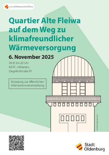 Die Entwicklung des Wärme- und Energieversorgungskonzeptes Alte Fleiwa ist eine Maßnahme aus dem „Klimaschutzplan Oldenburg 2035“ » und zugleich eine Art Vorausschau für die Kommunale Wärmeplanung » der Stadt Oldenburg.