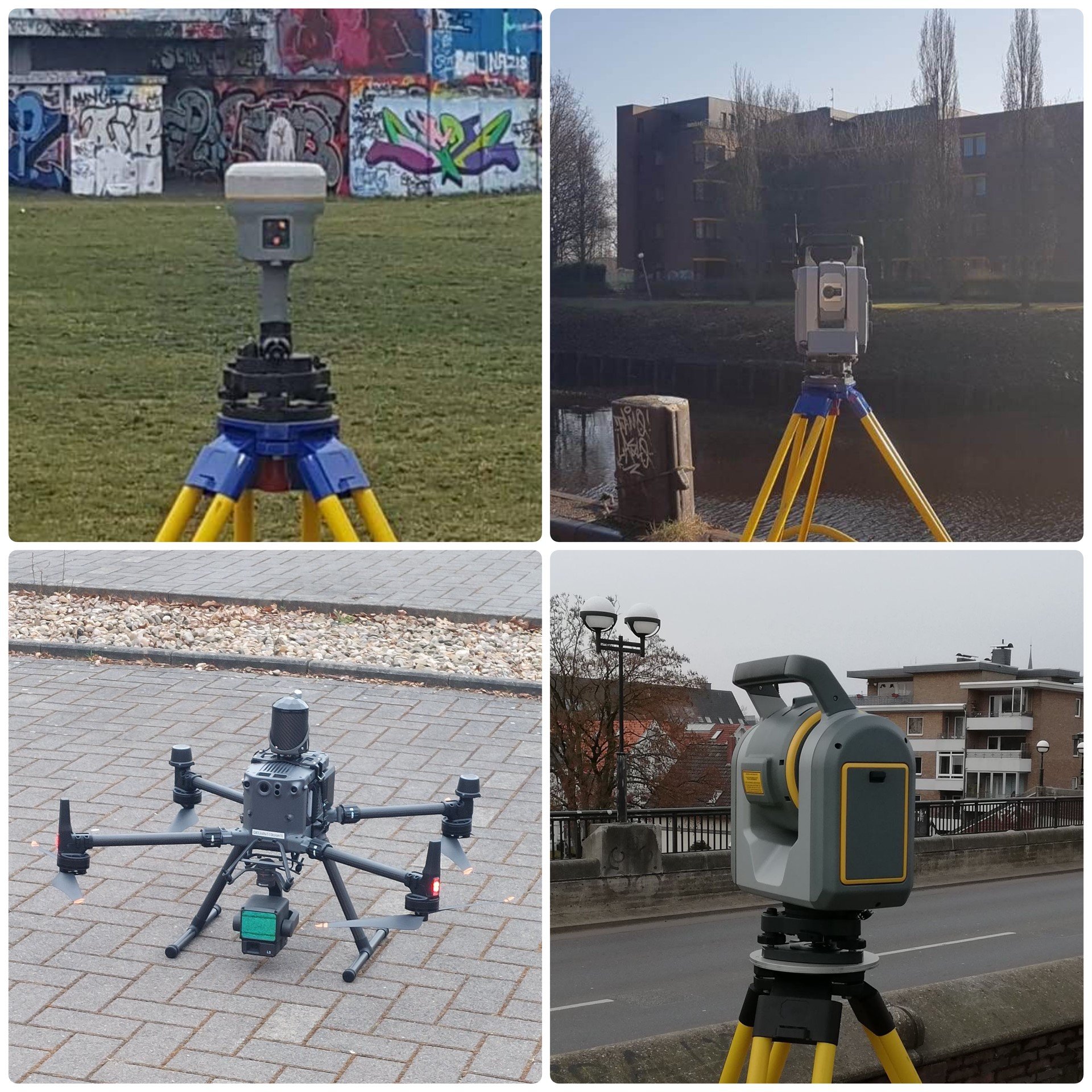 Das Team Vermessung nutzt hierfür modernste Technologien. Neben den klassischen Messinstrumenten wie Tachymeter und Nivelliergerät und manchmal auch das Messband, werden auch moderne Drohnen mit unterschiedlicher Sensorik (Photo, Thermal, Laserscan) sowie stationäre Laserscanner eingesetzt.