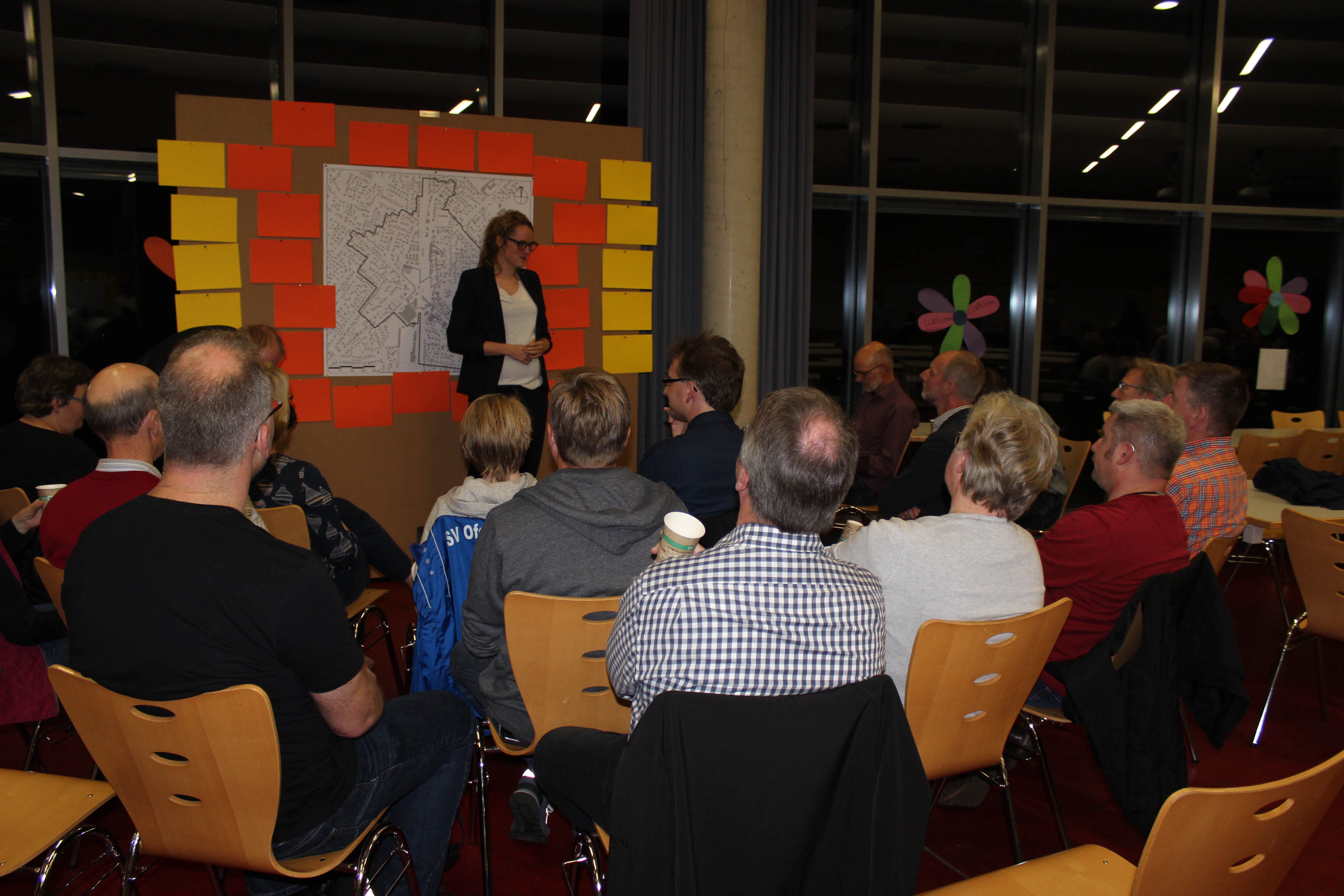 Alle Bürgerinnen und Bürger sowie Vertreter der Kirchen, Kaufleute, Werbegemeinschaften, Vereine und so weiter waren eingeladen, in einem Stadtteilworkshop über das anstehende Stadtteilzentrum zu diskutieren, Ideen und Visionen zu entwerfen und Umsetzungslösungen entwickeln.