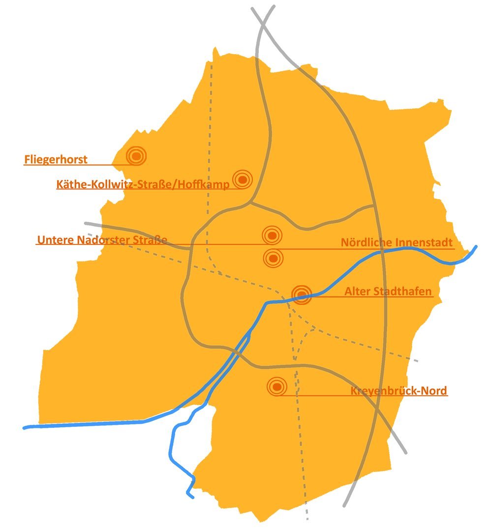 Die Stadt Oldenburg hat derzeit sechs laufende Stadterneuerungsgebiete: