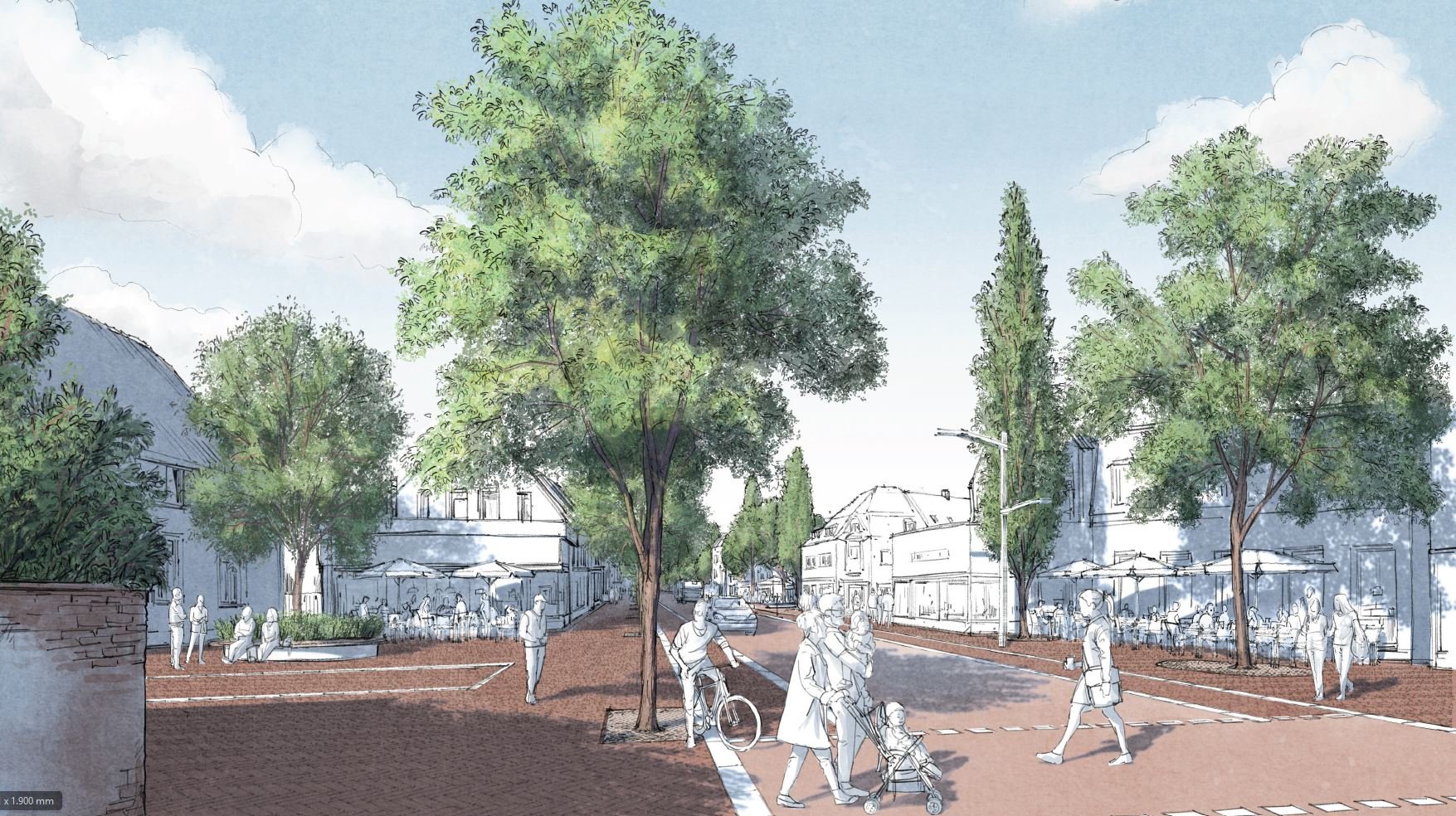 Der Entwurf enthält eine lückenlose Führung des Radverkehrs. Die Anforderungen einer Hauptachse für Radfahrende sind damit gut erfüllt. Dieses Radverkehrskonzept lässt neben dem Leben in einem Quartier mit Nahversorgung und Aufenthaltsqualität die Möglichkeit zu, schnell und sicher in die Stadt geführt zu werden.