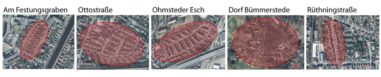 Aus der Vielzahl der in Frage kommenden Bereiche wurden nun die ersten zehn Siedlungen ausgewählt. Die Dringlichkeit wurde dabei abgeleitet aus der historischen und stadtgestalterischen Bedeutung der Siedlung für die Stadt Oldenburg sowie dem aktuellen Stand der Überformung, also der Veränderung des Ursprungzustandes. Je höher die Bedeutung und je geringer die Überformung desto größer ist die Dringlichkeit beziehungsweise Priorisierung eines Bereiches.