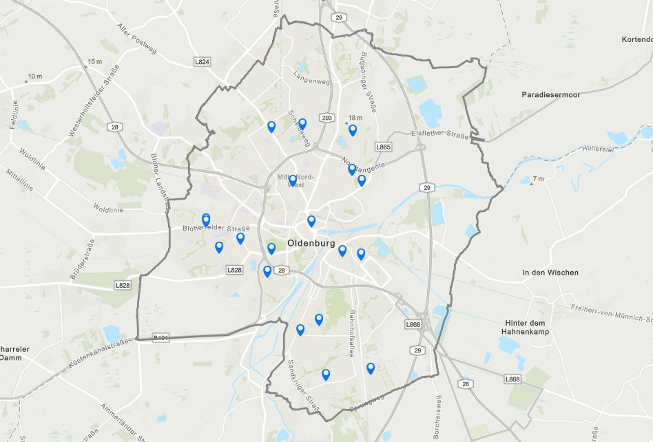 Das Konzept „Orte für Alle“ wird durch das Inklusive Quartiersmanagement aktiv unterstützt. Mit dem Konzept sollen lokale Treffpunkte sichtbar gemacht werden und die Entstehung neuer Orte unterstützt werden. Zu den vielfältigen städtischen Angeboten im Sozialen Stadtplan, die von den Menschen und Initiativen in Oldenburg genutzt werden können, zählen neben den Stadtteiltreffs der Gemeinwesenarbeiten und Jugendfreizeitstätten » auch das Kulturzentrum PFL », die Schulen » und die Stadtteilbibliotheken sowie das Haus der Jugend. Öffentliche Räume im Freien wie Spielplätze, Skateranlagen, Sportanlagen oder Parks sowie neuerdings die neue Freizeitfläche an der 91er-Straße können zentrale Treffpunkte sein. Weitere sollen nun hinzukommen, zum Beispiel mietbare Räume von Vereinen, gemeinnützigen Trägern oder und Religionsgemeinschaften.