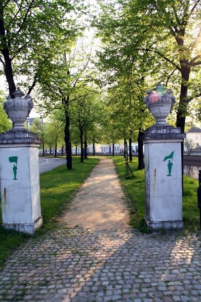 - Die städtebaulichen Gegebenheiten erlaubten die Wiederherstellung einer dreireihigen Lindenallee, allerdings mit größerem Abstand untereinander zur besseren Entwicklung.