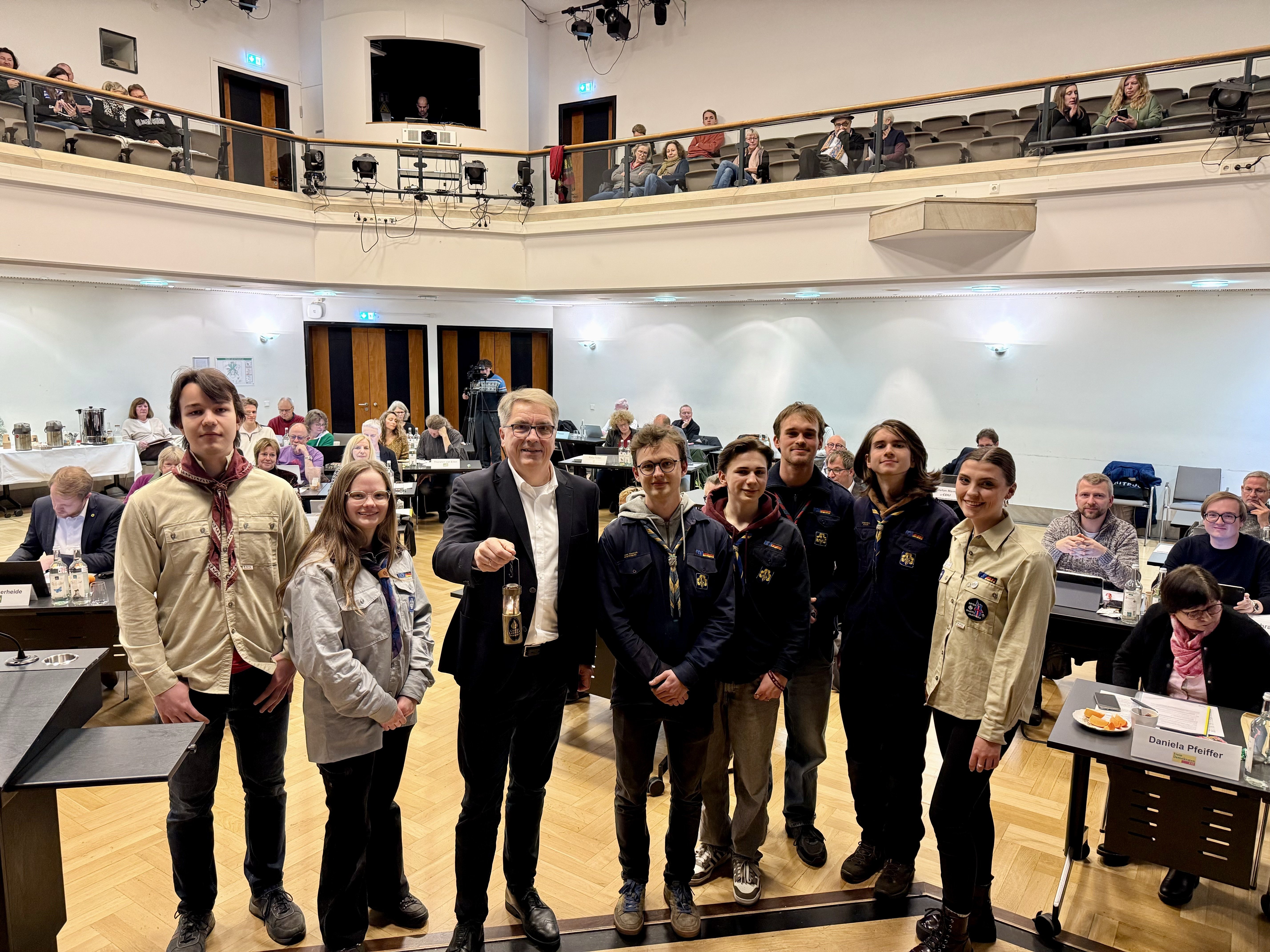 Ein Licht als leuchtendes Zeichen der Hoffnung: Am Montag, 15. Dezember 2025, hat Oberbürgermeister Jürgen Krogmann ein Friedenslicht aus den Händen einer Delegation von Pfadfinderinnen und Pfadfindern in Empfang genommen. Katharina Uecker vom Verband Christlicher Pfadfinderinnen und Pfadfinder (VCP) übergab die Kerze zu Beginn der Ratssitzung im Kulturzentrum PFL.