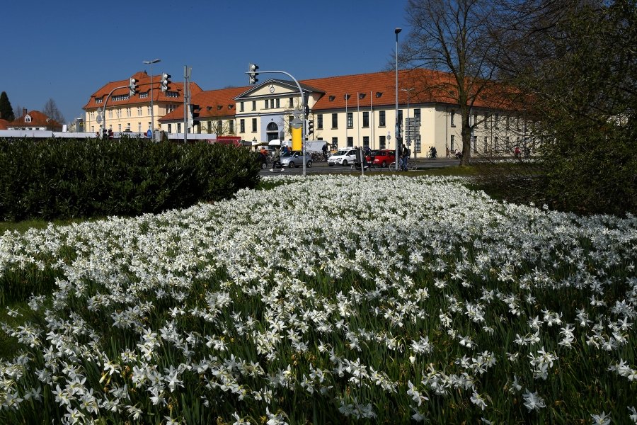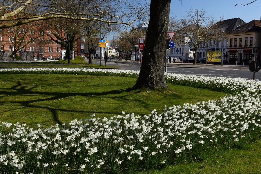 Blütenmeer im Kreisverkehr – Narzissen auf dem Pferdemarkt in Oldenburg
