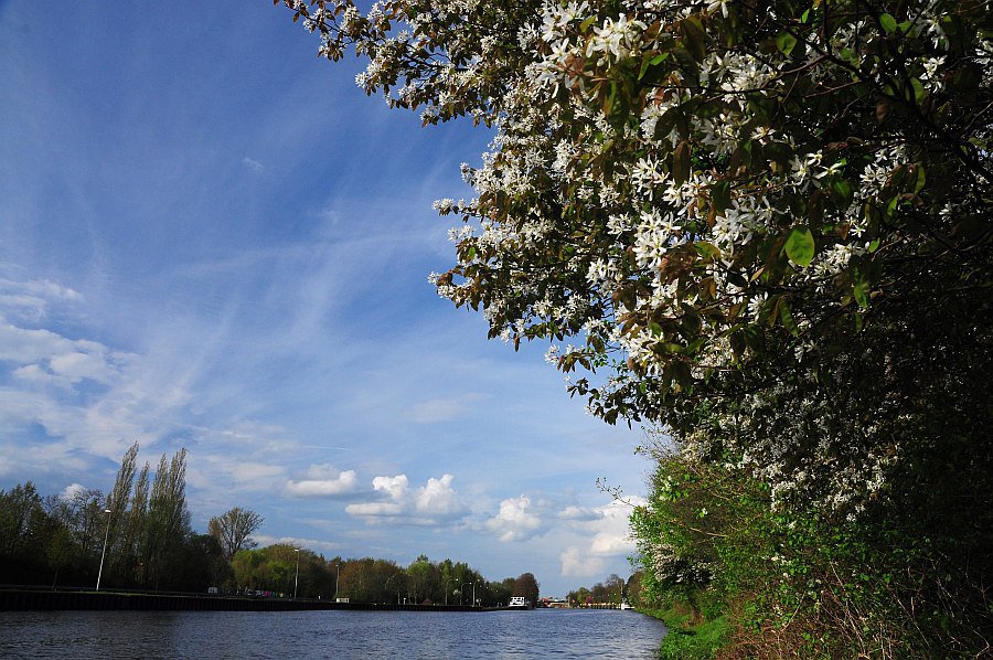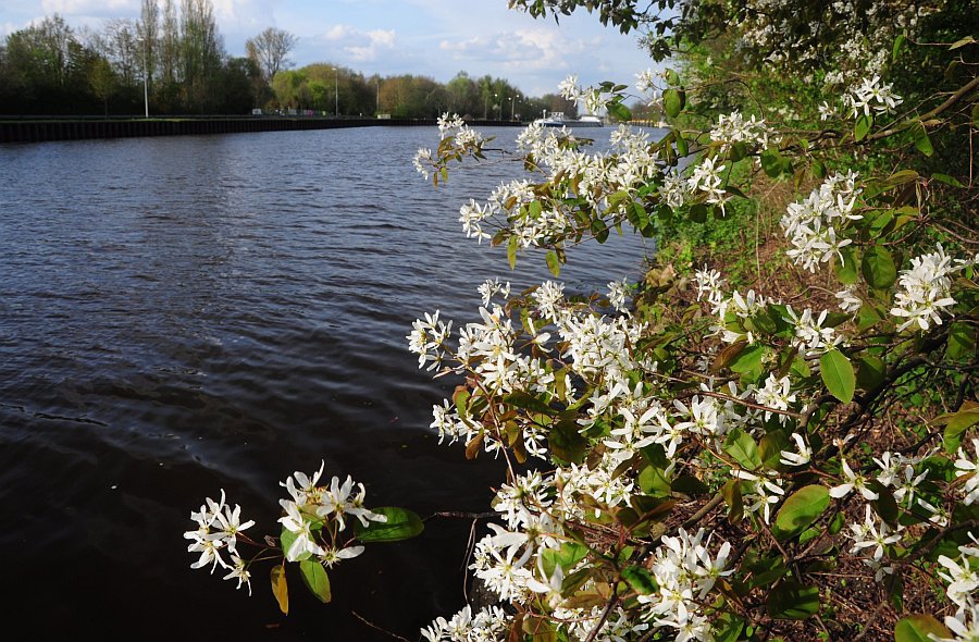 Frühlingspracht - Blühende Felsenkirschen am Küstenkanal in Oldenburg