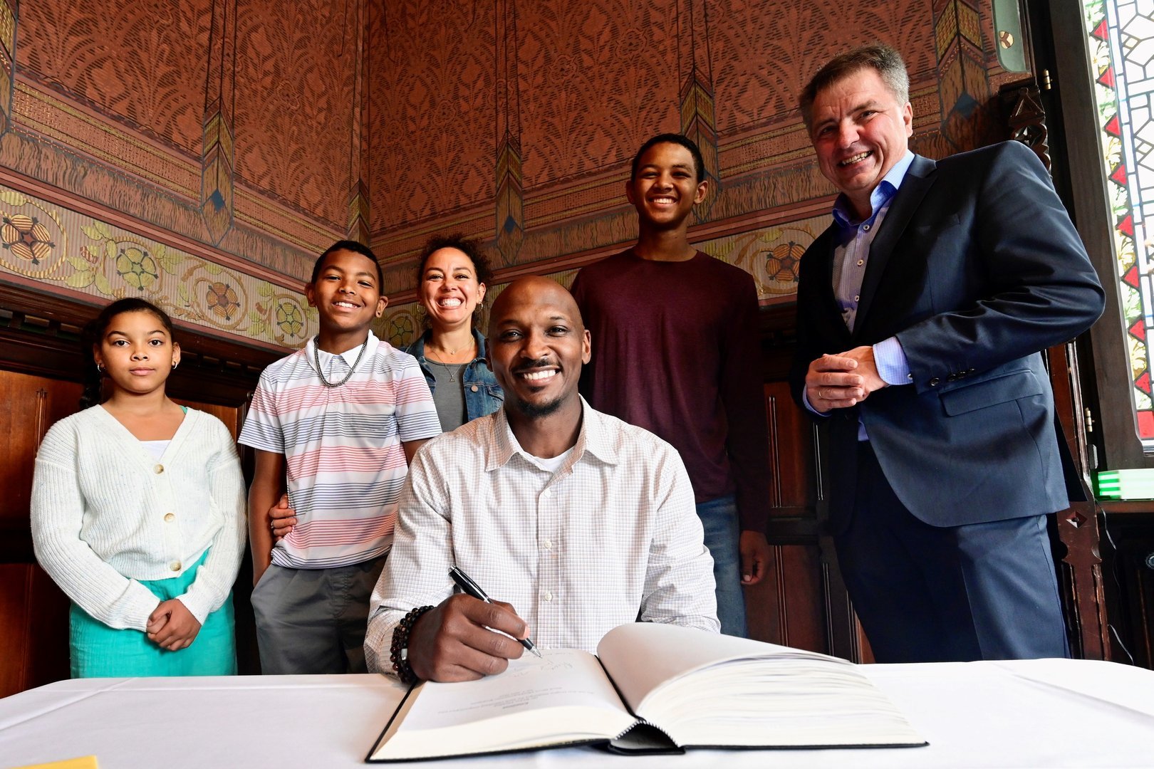 Nach der Verleihung verewigte sich Rickey Paulding gemeinsam mit seiner Frau Kara und den Kindern Tre, Sidney und Marleigh im Gästebuch der Stadt. Nach der Feierstunde im Rathaus wurde Paulding mit lautem Beifall von Baskets-Fans auf dem Rathausmarkt empfangen. Viele nutzten die Gelegenheit, um sich Trikots und Shirts signieren zu lassen und ein letztes gemeinsames Foto mit dem Publikumsliebling zu machen.