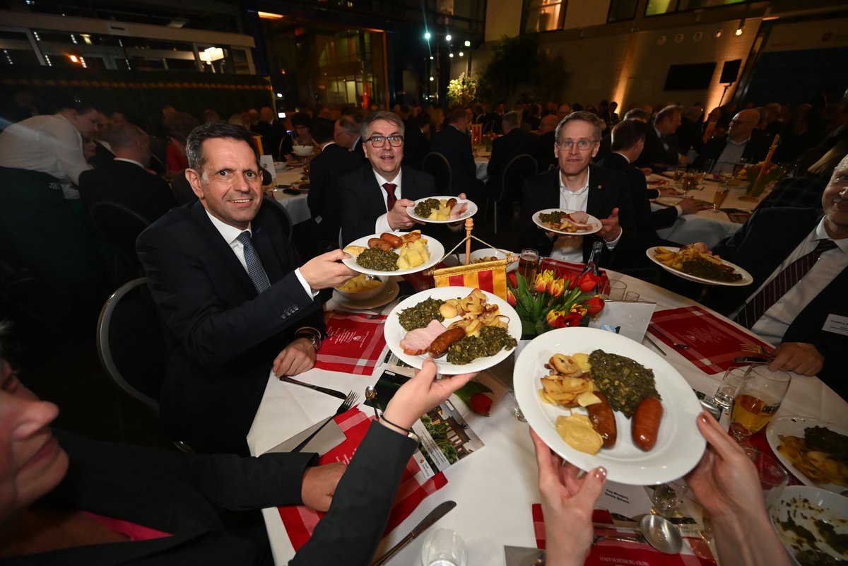 Die 67. Auflage des „Gröönkohl-Ätens“ fand wie gewohnt in der Vertretung des Landes Niedersachsen in der Bundeshauptstadt statt. Rund 270 Gäste aus Politik, Wirtschaft, Kultur und öffentlichem Leben sorgten für einen vollen Saal. Unter ihnen war auch Bundestagsvizepräsident Bodo Ramelow (Die Linke), der kurzfristig der Einladung gefolgt war, sowie Niedersachsens Innenministerin Daniela Behrens und Niedersachsens Wissenschaftsminister Falko Mohrs. Der Botschafter der Republik Litauen, Giedrius Puodžiūnas, gab sich ebenfalls die Ehre. Mit Stephan Weil war in Personalunion sowohl ein ehemaliger Grünkohlkönig als auch ein Ministerpräsident außer Dienst anwesend.