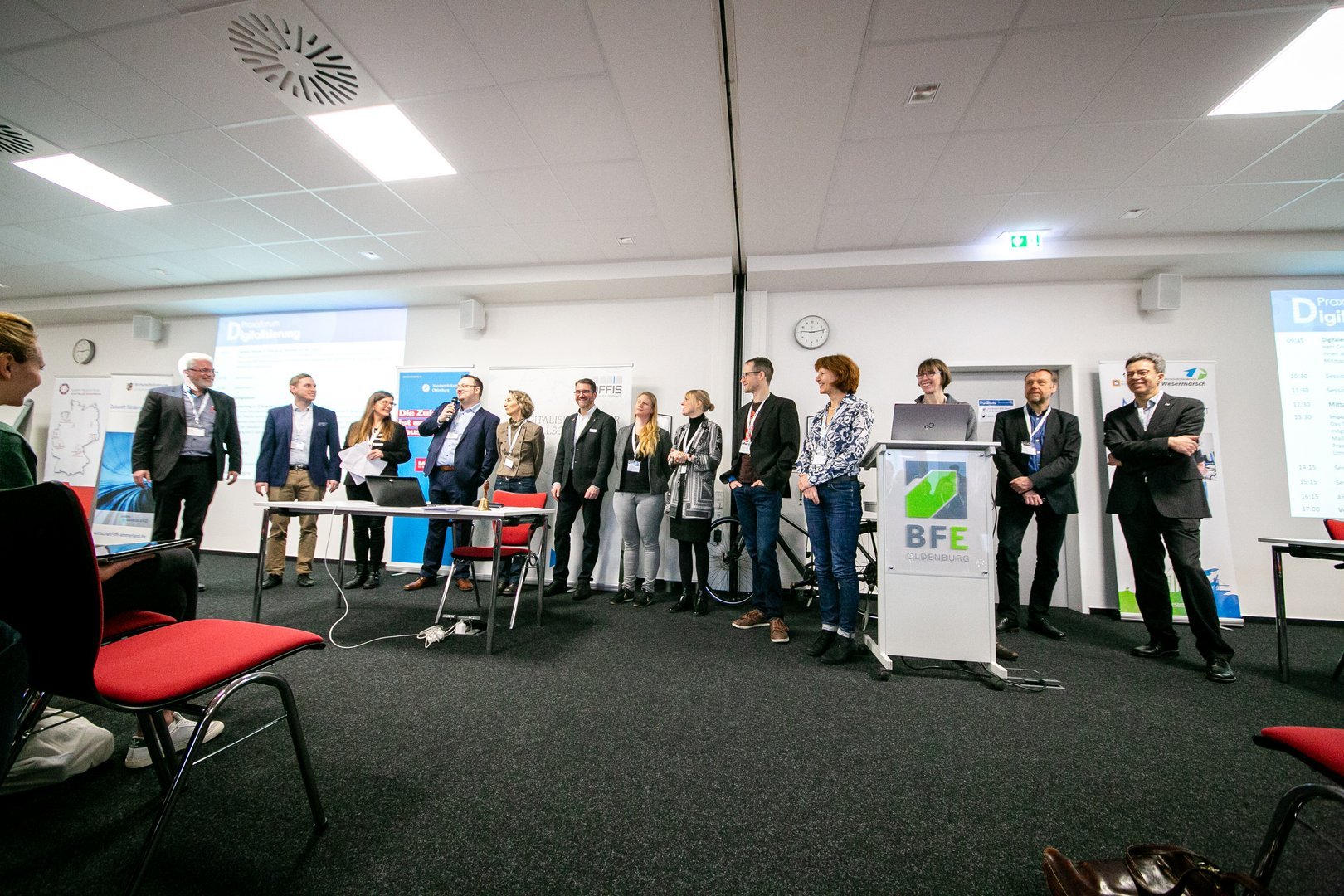 Hier zeigte sich die Stärke des Barcamp-Formats, in der jede und jeder die passenden Themen findet, denn insgesamt konnten über den Tag verteilt 20 Sessions angeboten werden. „Durch die Interessen der Teilnehmer und die Sessions während der Veranstaltung ergibt sich ein Bild der aktuell nachgefragten Themen der Digitalisierung – ein wichtiger Indikator, ob die gewählten Schwerpunkte die akuten Herausforderungen der Unternehmen treffen“, stellt Rainer Holtz, Bereichsleiter Projekte und Technologietransfer am BFE, der auch in diesem Jahr wieder Gastgeber Gastgeber des Events war, fest.