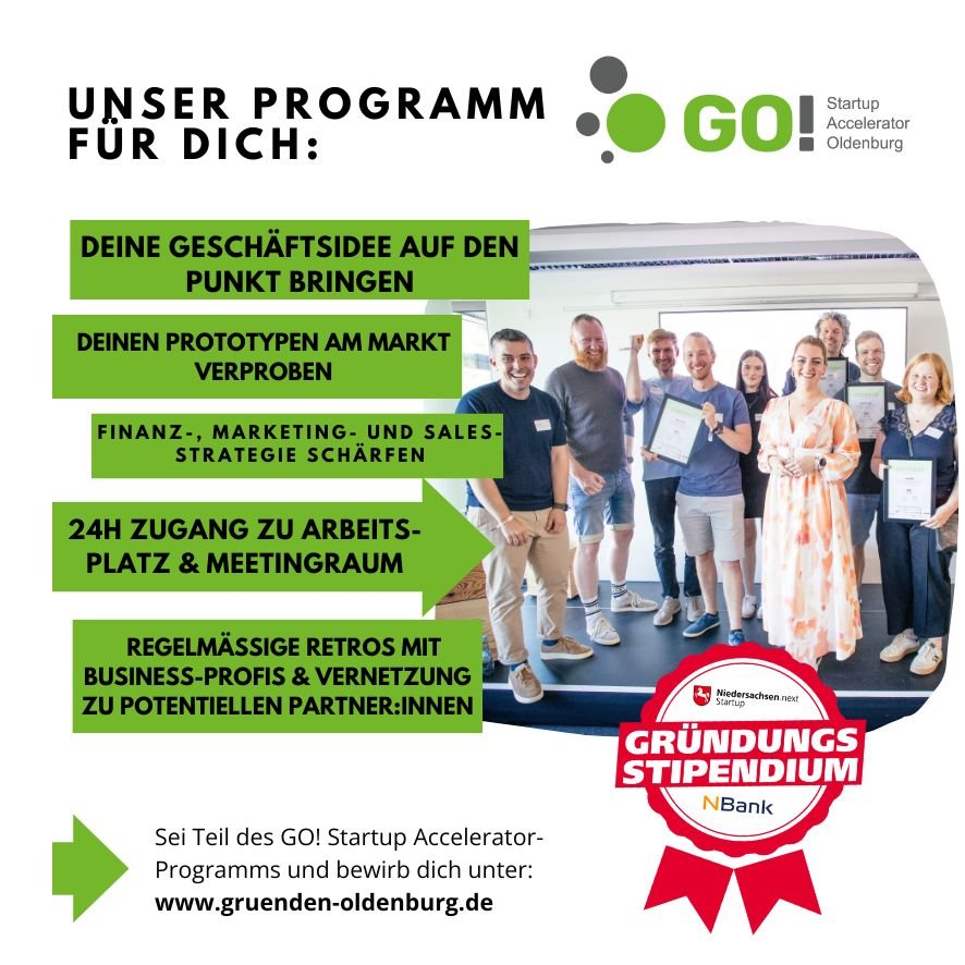 Der seit 2018 etablierte GO! Startup Accelerator erweitert das bisherige Angebot des TGO's. Gemeinsam mit der Wirtschaftsförderung der Stadt Oldenburg, der Oldenburgischen IHK sowie der Universität wurde dieses Projekt ins Leben gerufen, das gezielt Gründer aus den Bereichen „Digitalisierung“, „Energie“, „Künstliche Intelligenz“, „Klima“ und „Gesundheit“ fördern soll.