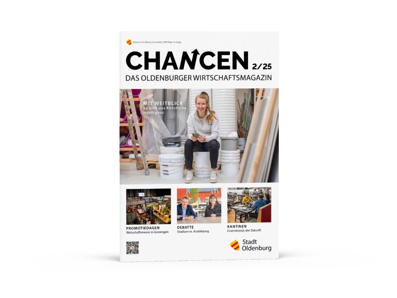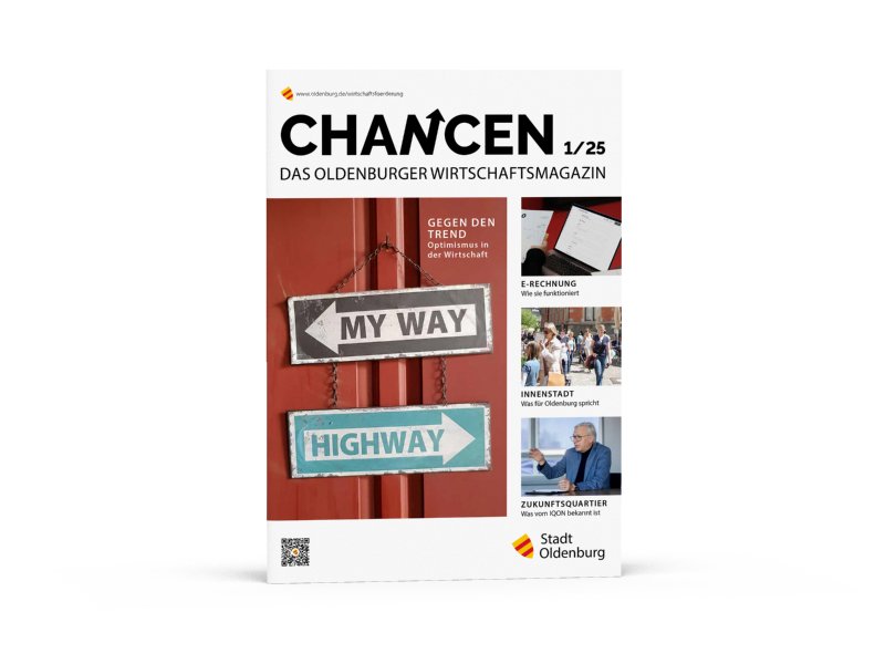 Sie möchten wissen, wie Oldenburgs Fußgängerzone zur Erfolgsgeschichte wurde? Wie Großunternehmen und Start-ups von Kooperationen profitieren? Oder wie Mittelständler die Chancen der vierten industriellen Revolution für sich nutzen können? Dann empfehlen wir Ihnen die Lektüre von CHANCEN, unserem Oldenburger Wirtschaftsmagazin, das wir drei Mal jährlich veröffentlichen. Die Kommunikationsplattform der Wirtschaftsförderung beschäftigt sich mit aktuellen wirtschafts- und wissenschaftsrelevanten Themen und informiert Sie gleichzeitig über unsere Arbeit sowie über Projekte und Veranstaltungen vor Ort. Das Magazin wird postalisch an rund 1.700 Unternehmen in Oldenburg und in der Region verschickt. Zudem stellen wir es auf dieser Seite für Sie zum Download bereit.