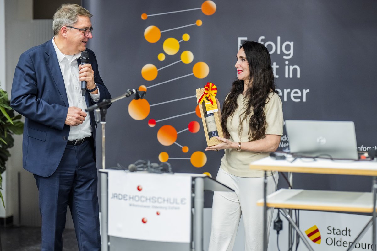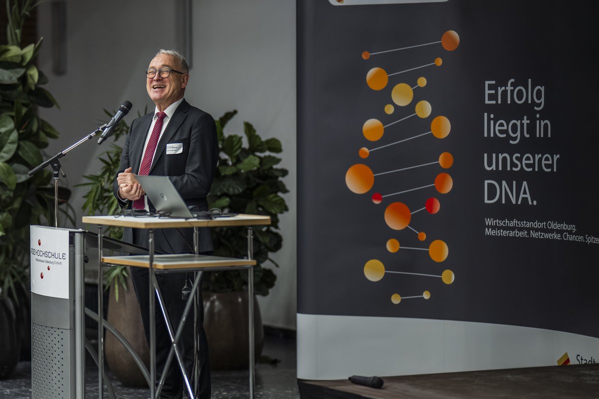 Hausherr Prof. Dr. Manfred Weisensee, Präsident der Jade Hochschule, freute sich, das „Who is Who der Wirtschaft“ im Lichthof empfangen zu dürfen. Er betonte, „dass Bildung etwas ist, das sich in Zukunft immer auszahlt“ und verwies auf die innovativen Studiengänge, die die Jade Hochschule aber auch andere Bildungseinrichtungen in Oldenburg und der Region bieten. „Da sind wir am Puls der Zeit“, so Weisensee.