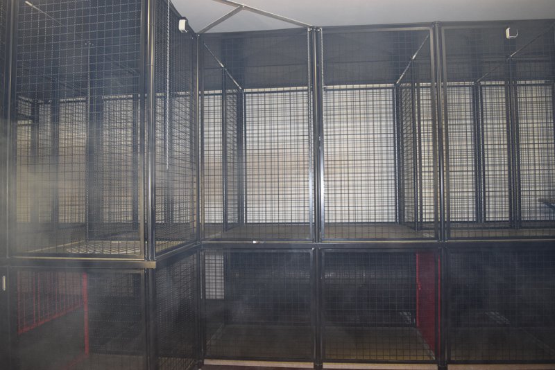 Im Anschluss ging es für uns in einen Nebenraum mit einem großen Gitterlabyrinth, in dem Thorstens Kollege Florian uns erklärte, dass in diesem Labyrinth das Bewegen in engen, vernebelten Gängen oder Räumen geübt wird. In dem Labyrinth befinden sich verschiedene Hindernisse, die man überwinden muss. Was wir im Hellen mit ein wenig Nebel geübt haben und allen Kindern großen Spaß gemacht hat, müssen die Feuerwehrleute mit Ausrüstung im dichten Nebel und im Dunkeln schaffen. Hierbei kann von außen mittels einer Wärmebildkamera ermittelt werden, wo sich der einzelne Feuerwehrmann befindet.