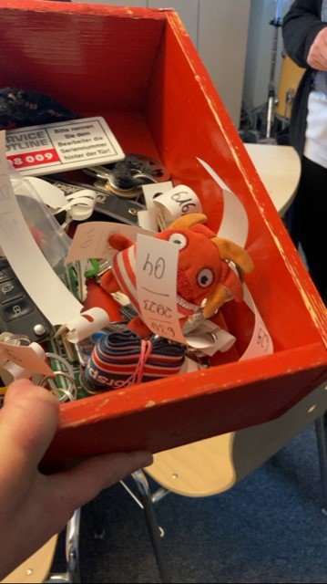 Nach unserem kleinen Rundgang durch das Fundbüro konnten wir noch einige Fragen stellen, dabei haben wir erfahren, dass es in fast allen Städten ein Fundbüro gibt. Hier in Oldenburg werden die meisten Gegenstände in der Innenstadt oder im OLantis sowie auf Veranstaltungen, wie zum Beispiel dem Kramermarkt, gefunden. Dort gibt es meist eine Fundkiste, in der Gegenstände gesammelt werden, die dann ins Fundbüro kommen. Und wie man beweisen kann, dass ein Gegenstand einem selbst gehört? Das geht je nach Art des Gegenstands unter anderem durch Fingerabdrücke, Kaufverträge, Fotos und Entsperr-Codes. Zum Abschluss haben wir Loren Wiegand noch gefragt, warum ihr ihre Tätigkeit im Fundbüro ganz besonders Spaß macht und sie sagte, dass es für sie nichts Schöneres gibt, als den Menschen, die etwas verloren haben, ein Lächeln ins Gesicht zu zaubern, wenn sie ihren verlorenen Gegenstand im Fundbüro wiederfinden – und diesen Moment stellen wir uns auch sehr schön vor!